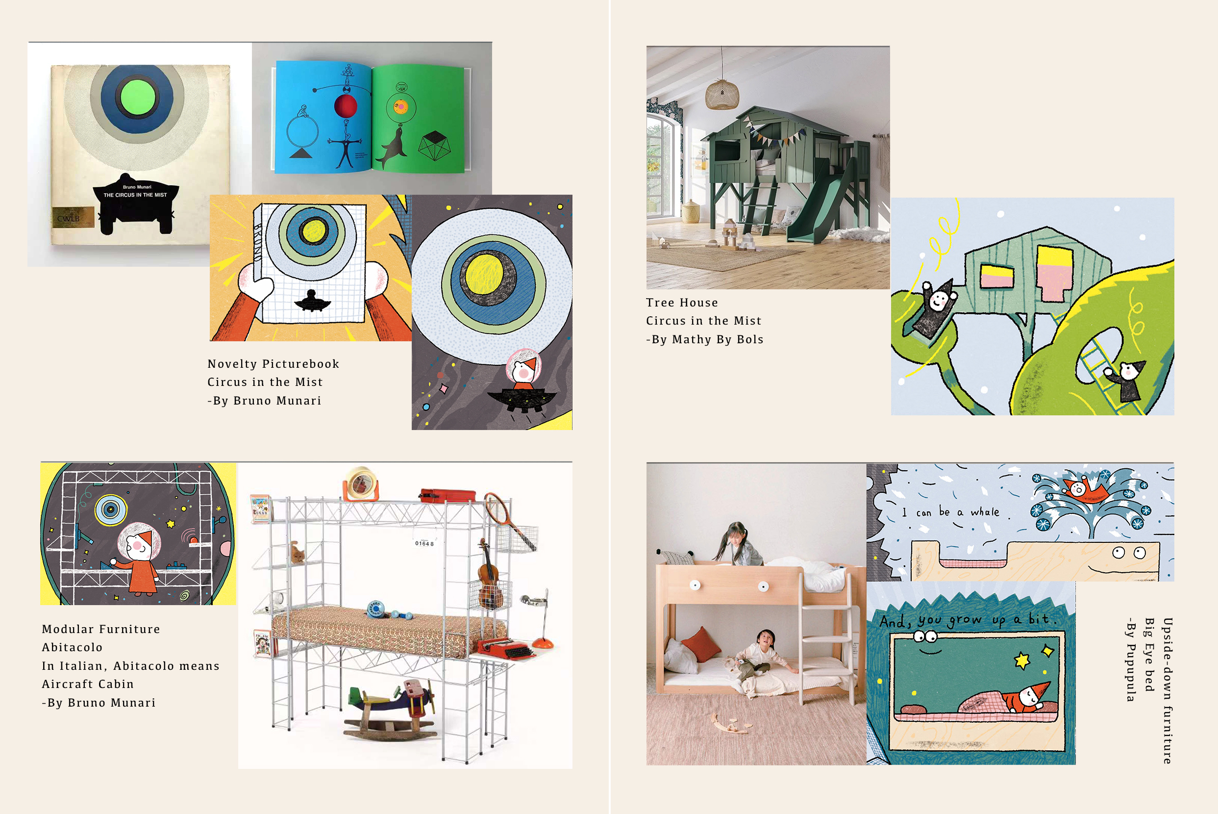 Invited by XUXUDUODUO, I created mini comics for each of the six fantastic kids-friendly designs. These designs range from classic children's pictureebook and furniture by Bruno Munari to some start-up brands. In these mini comics, I aim to capture the key design features as well as fun and imagination inherent in these “good designs” for children.